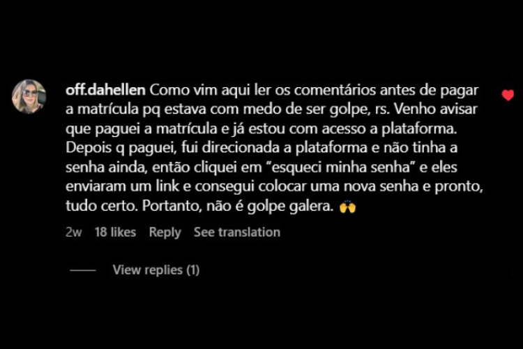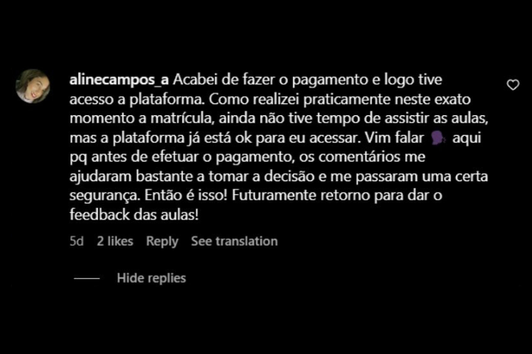 Assim que o pagamento for aprovado, você recebe automaticamente no seu e-mail os dados de acesso à plataforma do curso. O processo é imediato e você já pode começar a estudar hoje mesmo.