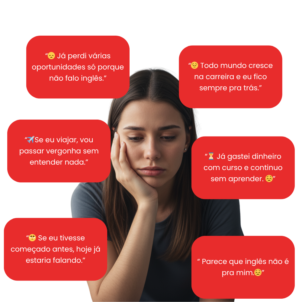 Viver travado, perdendo oportunidades no trabalho, evitando viagens ou se sentindo inferior porque não fala inglês.